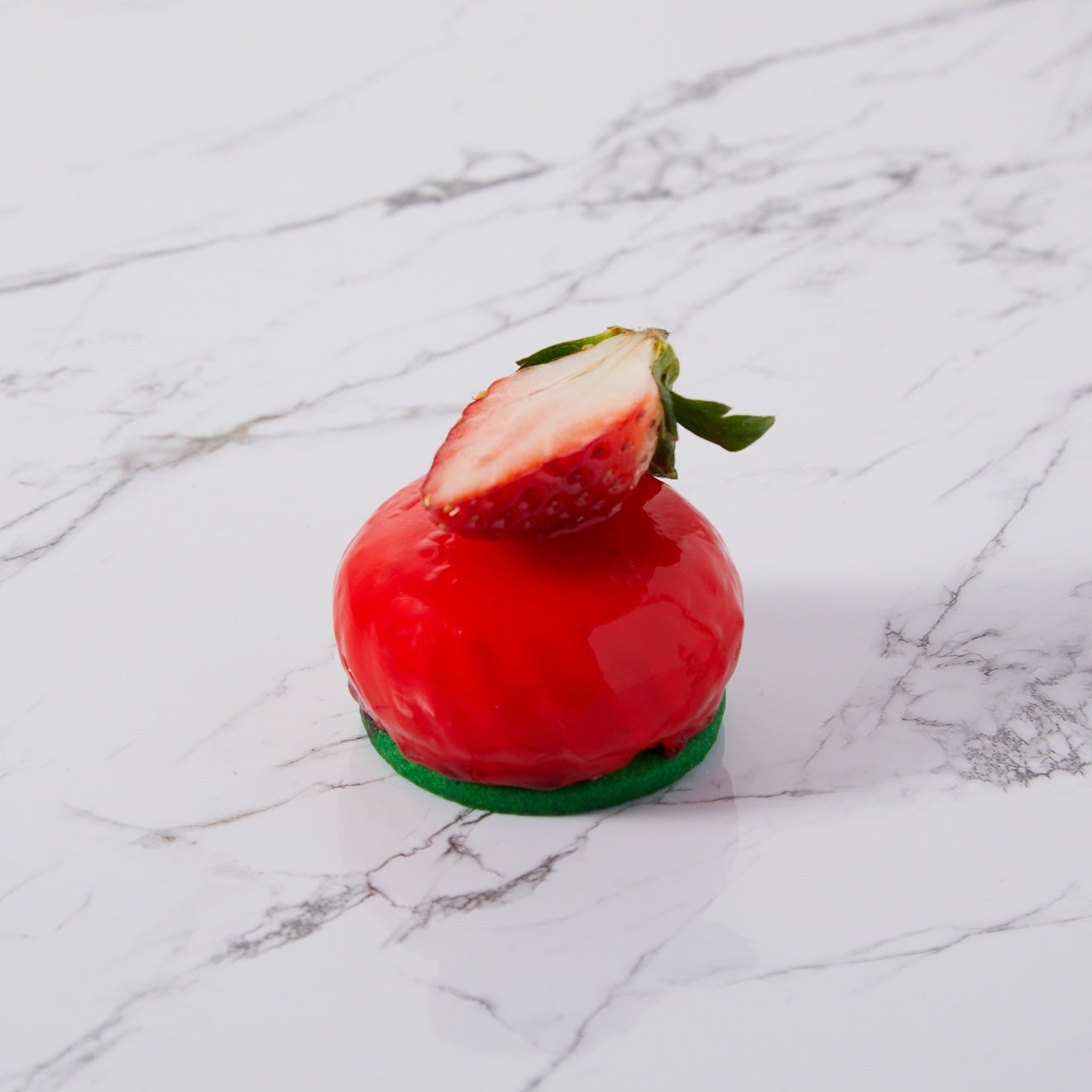 苺とトンカ豆のクリーム バニラの香り / 苺とバジルのムース / ガナッシュベリーのパート ド フリュイと苺飴