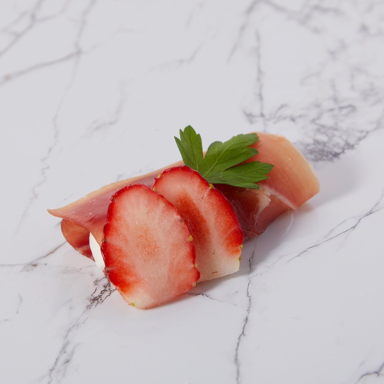 コク深いチーズクリームを、雪のように軽やかな真っ白なメレンゲで包み込み、苺のマリネやソルベ、ジュレを重ねた、苺尽くしの一皿に仕上げました。サクサクとしたメレンゲを崩しながら、苺の瑞々しさや甘酸っぱさ、なめらかなクリームの調和をお楽しみいただけます。