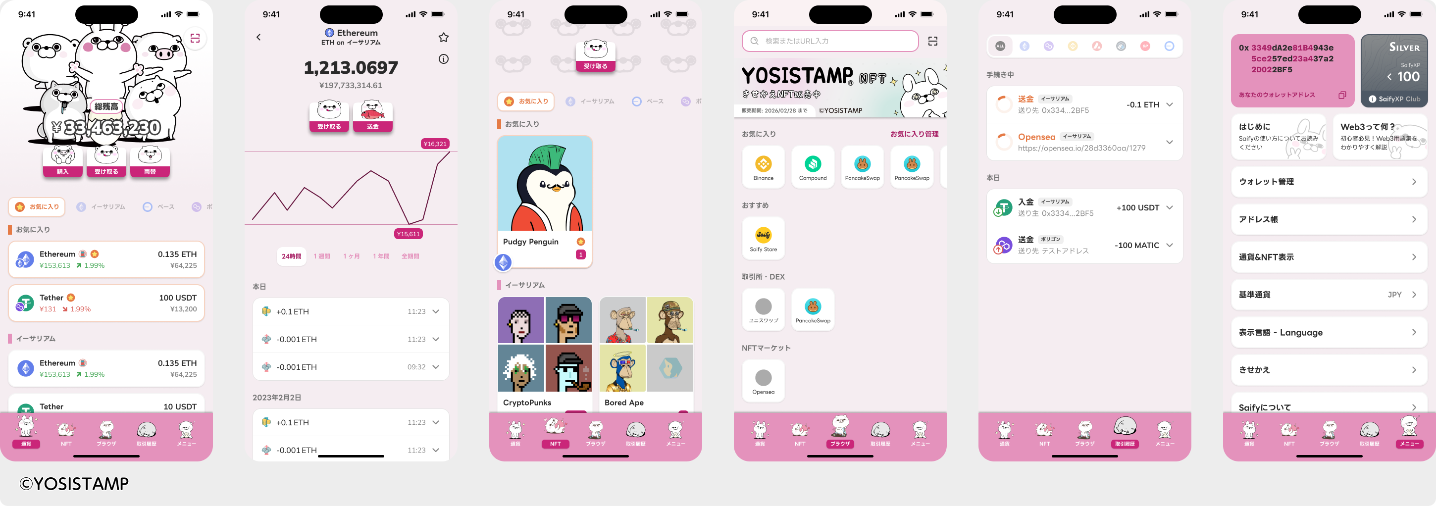 Saifyは、「きせかえ機能」を搭載した暗号資産ウォレットアプリです。「難しい・とっつきにくい」という暗号資産のイメージを払拭し、初心者でも直感的に使えるUI/UXを実現しています。
