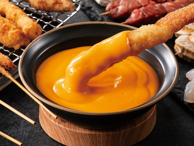 従来提供されていた野菜・肉の定番串、タコ焼きやシューアイスなどの変わり串に加え、「チーズ三昧コース」が登場。