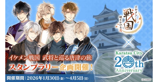 株式会社サイバード(本社:東京都品川区、代表取締役社長 兼 CEO 長嶋 貴之)が手掛ける、全世界でのシリーズ累計会員数4,500万人を誇る大人気恋愛ゲーム「イケメンシリーズ」の大人気作『イケメン戦国 時をかける恋 』(以下、『イケメン戦国』)は、佐賀県唐津市にて、市内各所を巡るスタンプラリー企画「イケメン戦国 武将と巡る唐津の旅」を2026年1月30日より開催します。
