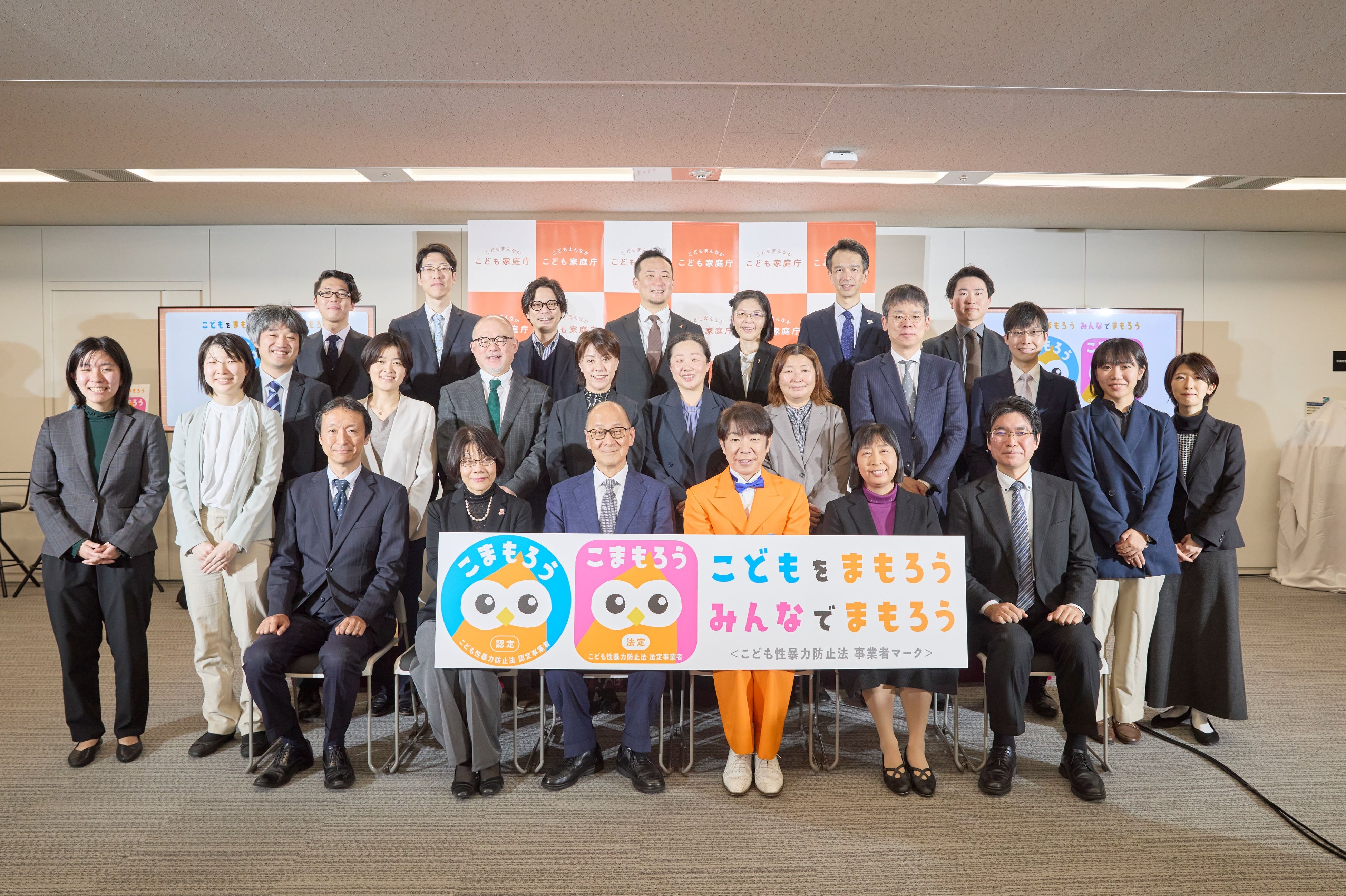 発表会冒頭では、こども家庭庁・渡辺長官が登壇し、法律に基づき、こどもを性暴力から守るための取組を適切に行う事業者が表示できる「こまもろう」マークを発表しました。本マークは、学習塾やスポーツクラブなど、認定を受けて取組を行う事業者用のマーク「認定事業者マーク」と、学校や認可保育所など、取組が義務となっている事業者用のマーク「法定事業者マーク」の2種類があります。事業者は、施設や広告などに本マークを表示することで、性暴力防止に取り組む事業者であると、こどもや保護者等に知らせることができます。