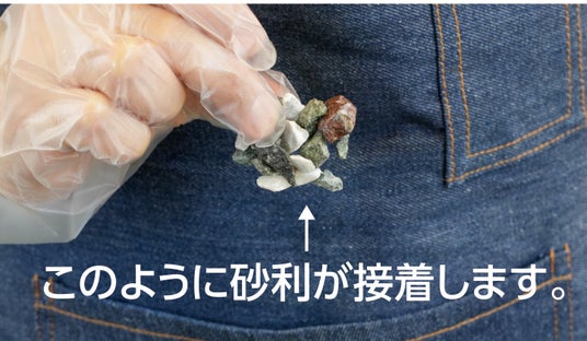 シャワーヘッド付き容器を採用しており、シャワー状に散布できるため、広範囲でも均一に施工が可能です。力を入れる必要がなく、誰でも簡単に扱える設計となっています。推奨小砂利サイズは9~15mmで、一般的な砂利に対応できます。施工後は透明クリアに仕上がるため、砂利本来の意匠性や色合いを損なうことなく、美しい景観をそのまま維持できます。