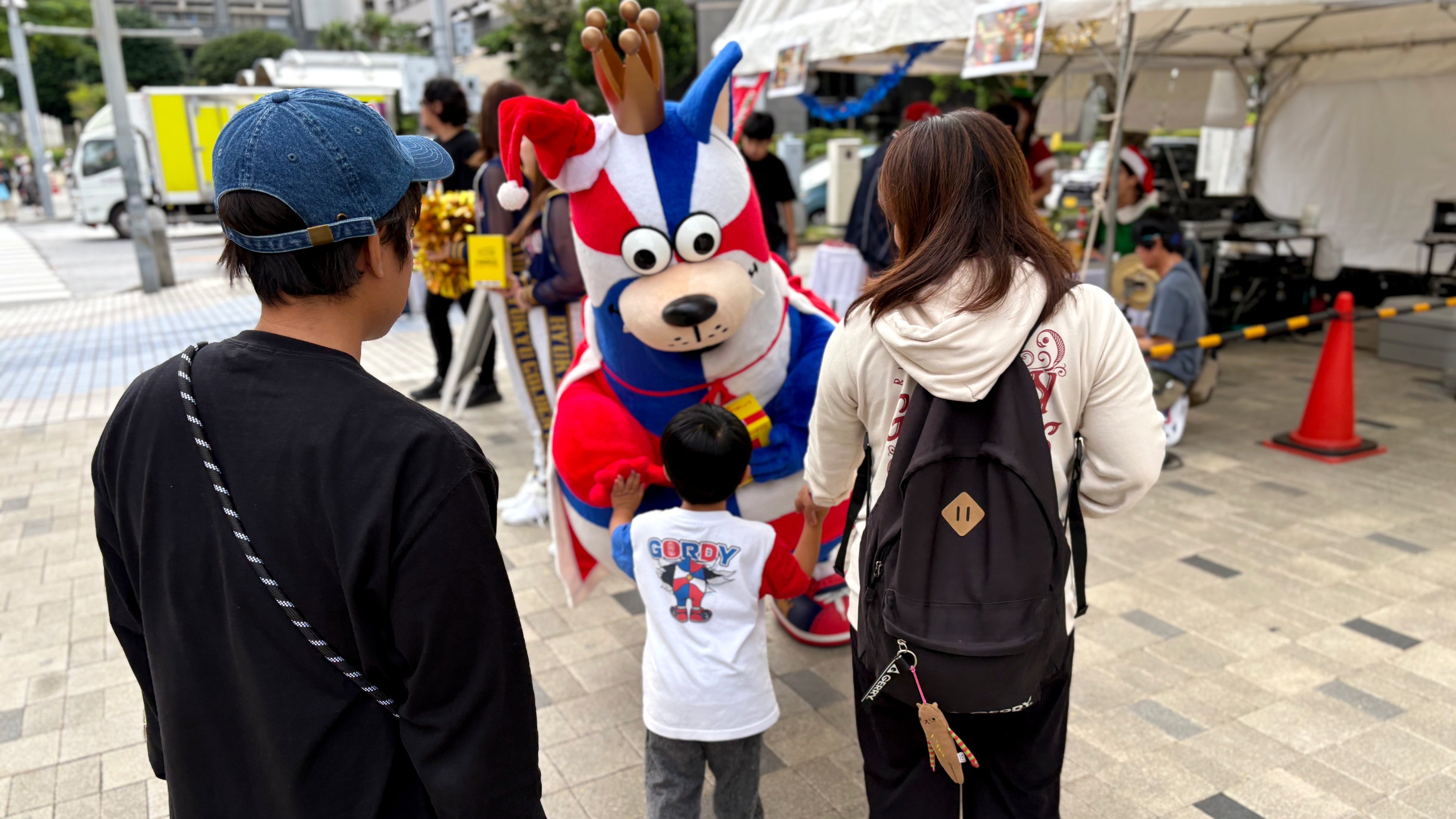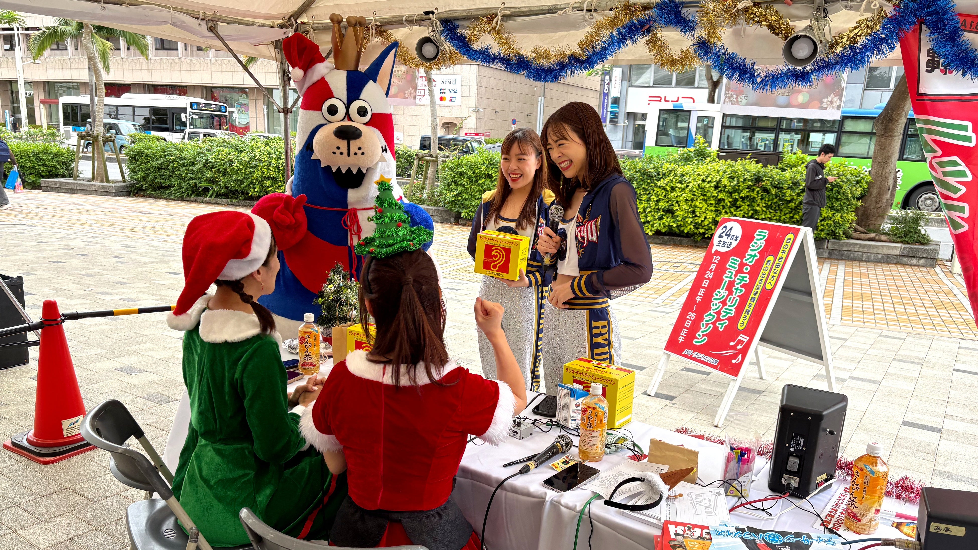 イベント当日は、ゴーディーとキングスダンサーズが募金活動に参加いたしました。地域の皆さまと写真撮影や交流を楽しみながら、募金への協力を呼びかけたほか、ラジオの生放送にも出演し、募金活動の様子やキングスのホームゲームの情報をお伝えしました。募金にご協力いただいた方からは、「年末年始の試合、観に行きます!」、「いつも応援しています!」と多くの方に声をかけていただきました。