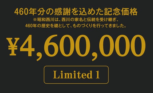 昭和西川記念日特別価格:840,000円/2,026,000円/4,600,000円(すべて税込)
