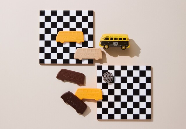ミニチュアのフォルクスワーゲンType2(バス)型のチョコレートと、バスの横顔が可愛いプレートチョコレートの詰め合わせです。