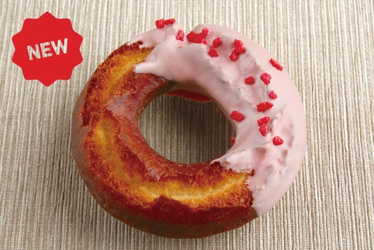 オールドファッションになめらかないちごチョコレートをコーティング。いちごのフリーズドライをのせて可愛く仕上げました。