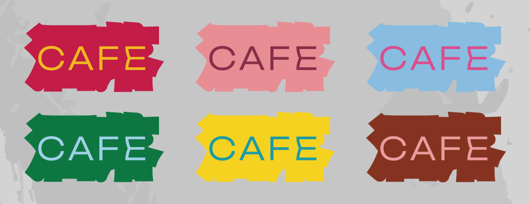 BOX状に塗りつぶされたストロークには、既存のカルチャーや常識を“塗り替えていく”存在でありたいという、洒落CAFEの強い意志を込めています。