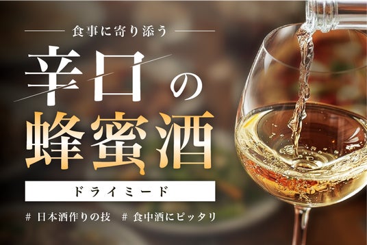 ミードは蜂蜜を原料とするため豊かな甘みが魅力である一方、甘さゆえに食後の一杯にとどまってきました。「食事とともに楽しめるミードがあってもいいはず」と考えた私たちは、日本酒蔵として培った発酵の力で、甘くない・食事に寄り添う“ドライミード”の開発に成功しました。世界にもドライタイプのミードは存在しますが、和食文化の文脈で設計した「料理を引き立てるドライミード」は、まさに日本だからこそ生まれた味わいです。日本酒づくりの技を生かし、蜂蜜から生まれるお酒「ミード」に新しい風を吹き込んでいきます。