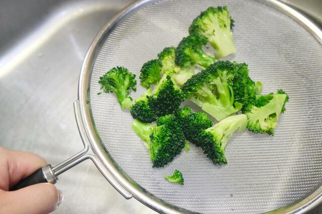 揚げ物以外にも使えると聞いて、ブロッコリーを茹でたときに湯切り用のザルとして試してみました。