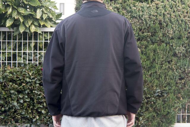 前身頃と後ろ身頃で異なるフリース素材を使うことで、効率よく風を防ぎつつ、熱を逃がす仕様になっています。