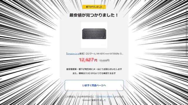 試しに登録してみた「ロジクール MX KEYS mini KX700GRd」の値下がりメールが届いたときは、かなりテンションが上がりました。今この時代にまさかメールの通知で小躍りすることがあるなんて。