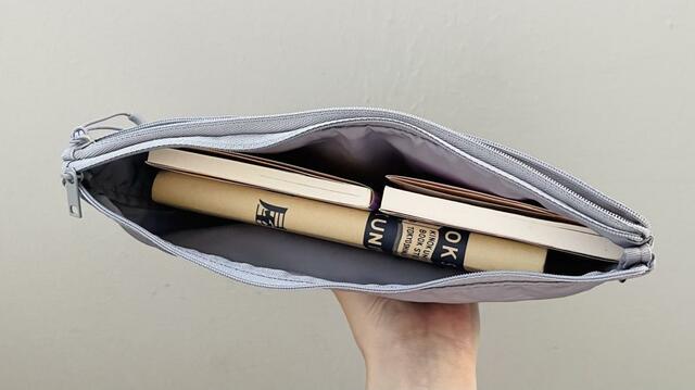 現在S、M、Lサイズが販売されていますが、Lサイズは単行本1冊、文庫本2冊を入れられる収納力がありました。