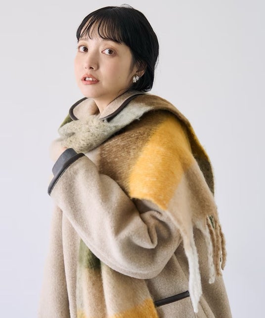 【ボリューム チェックフリンジマフラー】柔らかいカラーリングでスタイリングのアクセントに