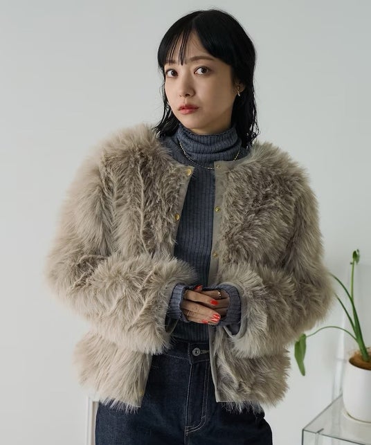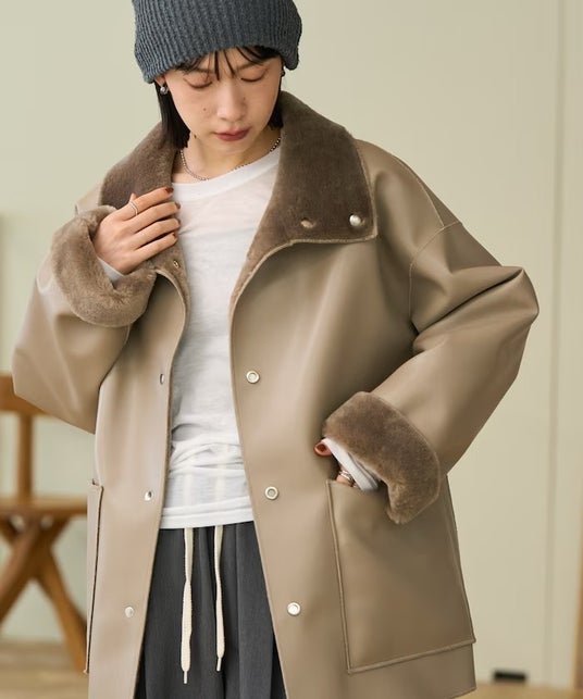 【ファーボアスタンドコート】合皮とファーのリバーシブルタイプ