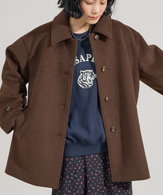 【ウーリーミニフレアコート】ウール見えしながら扱いやすくて軽い