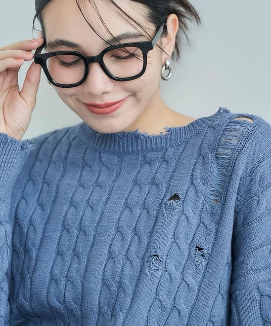 【ケーブルダメージニットプルオーバー】ベーシックなケーブルニットにダメージ加工を施したユニークな一着