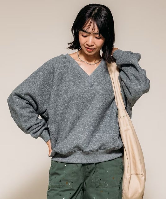 【裏毛杢 Vネックスウェットプルオーバー】もちもちとした柔らかい肌触り