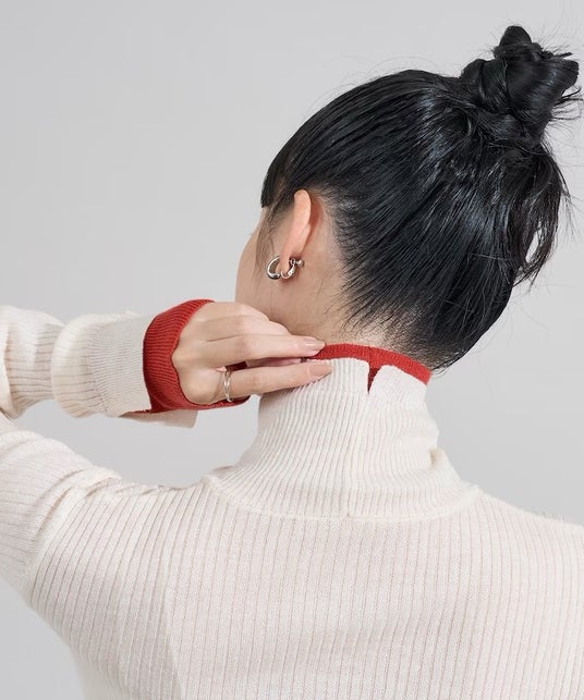 【ウォッシャブル 配色タートルニット】差し色に使えるタートルニット