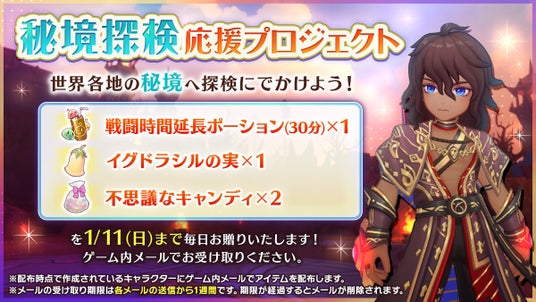 さらに、ポーションが手に入る「秘境探検応援プロジェクト」や、新頭装備「スイート・ティアラ・ケーキ」「ごろっとマンゴー帽子」が手に入る「寒中お見舞い!春待ちの贈り物」など、豪華報酬が手に入るイベントが盛りだくさんとなっています。