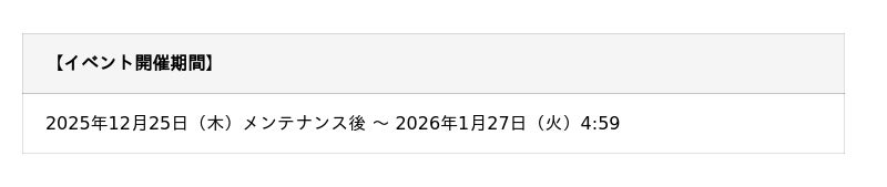 新たな年の幕開けを祝う季節イベント「ハッピーニューホース!2026~新春神馬の蹄音~」を開催いたします。12月25日(木)からの「2025年ミッドガルド観光大使からのお礼」を実施する他、12月26日(金)からは新年の到来を待望する「ニューイヤー・カウントダウン・ログインボーナス」を開始。また、元日からは「新春DXラグマスガチャ2026」や豪華報酬が手に入る「新春! 開運・招福お年玉」のログインボーナスを実施します。