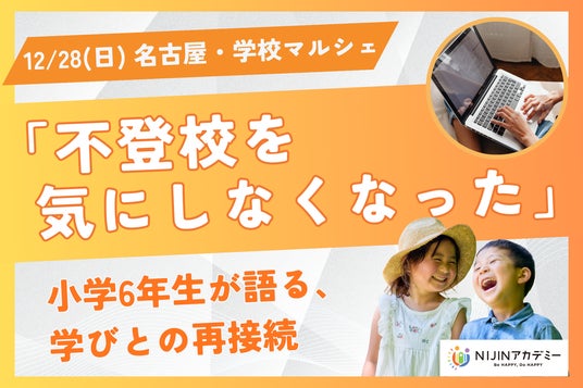 株式会社NIJIN(本社:東京都江東区、代表取締役:星野達郎)が運営する、不登校オルタナティブスクール『NIJINアカデミー』は、学びの多様性を広げる取り組みとして、2025年12月28日(日)に名古屋市で開催される教育マルシェに協力し、当日は同アカデミーに通う小学6年生が登壇します。