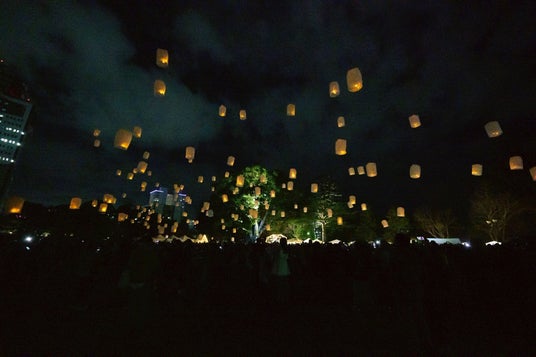 みんなでつくり上げた無数のランタンが夜空へ舞い上がる瞬間は、