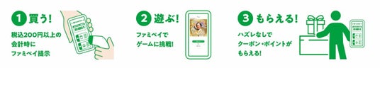 ゲーム内では、年末年始のキャンペーンアンバサダー松平健さんのサンバが表示され、ファミチキやラインソックスの無料引換クーポン、ファミマポイントなどがハズレなしで当たります。年末年始期間はファミリーマートでのお買物と「ファミペイジャンボ」をお楽しみください。