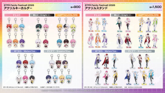 株式会社STPR(本社:東京都渋谷区 代表:柏原真人、以下STPR)は、当社所属の2.5次元アイドル・歌い手グループ「すとぷり」「Knight X - 騎士X -」「AMPTAKxCOLORS」「めておら - Meteorites -」「すにすて - SneakerStep Prod.STPR MUSIC」が出演する大型ライブイベント『STPR Family Festival!! 2026(通称:すとふぇす)』のオフィシャルグッズを公開いたしました。なお、オフィシャルグッズは、STPR ONLINE STOREにて2025年12月27日(土)19:00から事前通販受付を開始いたします。