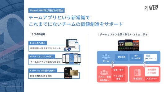 ▶︎事業内容:スポーツコミュニティアプリ「Player!」および「Player! WHITE」の開発・運営、スポーツ情報インフラの開発・運営