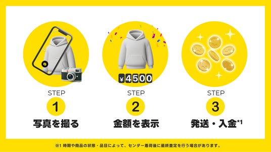 ・商品を撮影するだけで、AIが自動査定し瞬時に金額を提示。発送後すぐに現金化が可能(※1)