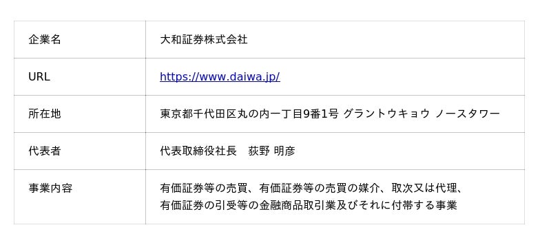 株式会社SBI証券(代表取締役社長:高村 正人、以下「SBI証券」)、大和証券株式会社(代表取締役社長:荻野 明彦、以下「大和証券」)、株式会社SBI新生銀行(代表取締役社長:川島 克哉、以下「SBI新生銀行」)、株式会社BOOSTRY(代表取締役社長:平井 数磨、以下「BOOSTRY」)、大阪デジタルエクスチェンジ株式会社(代表取締役社長:朏 仁雄、以下「ODX」)、株式会社ディーカレットDCP(代表取締役会長兼社長執行役員CEO:村林 聡、以下「ディーカレットDCP」)は、セキュリティトークン(以下「ST」)1の二次流通市場の発展に向けた新たな決済スキームを実現するべく、トークン化預金DCJPY(以下「DCJPY」)を利用したSTのDVP2決済の実証(以下「本プロジェクト」)に関する協業を開始しました。本プロジェクト関係者は、2025年8月に、検証用データを用いたSTとDCJPYのDVP決済の検証を実施し、STの二次流通時を想定したDVP決済に係るシステムイメージと業務フローの整理を概ね完了しております。今後、STおよびDCJPYの実発行による検証に取り組んで参ります。