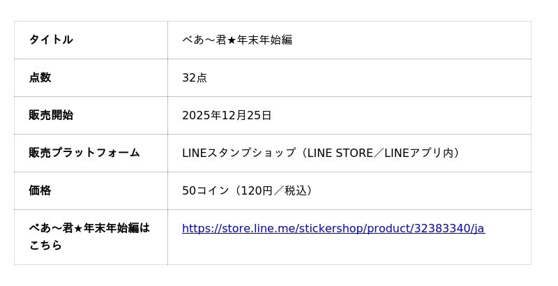 賃貸住宅仲介業において、店舗数*1 および契約数*2 ともに No.1 を誇る APAMAN株式会社(東京都中央区、代表取締役社長:山崎戒)が展開する「アパマンショップ」は、そうした年末年始・冬のコミュニケーションシーンに寄り添うツールとして、公式キャラクター「べあ~君」のLINEスタンプ第3弾『べあ~君★年末年始編』 を販売開始しました。