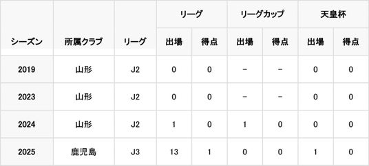 - J3リーグ戦 通算13試合出場1得点