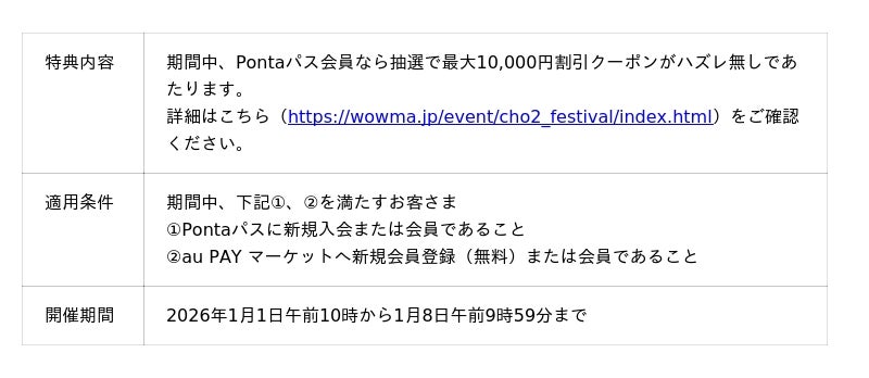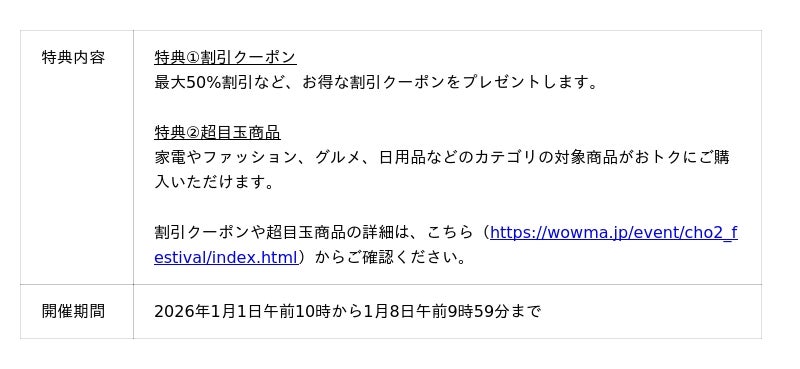 「新春ポイント超超祭」https://wowma.jp/event/cho2_festival/index.html