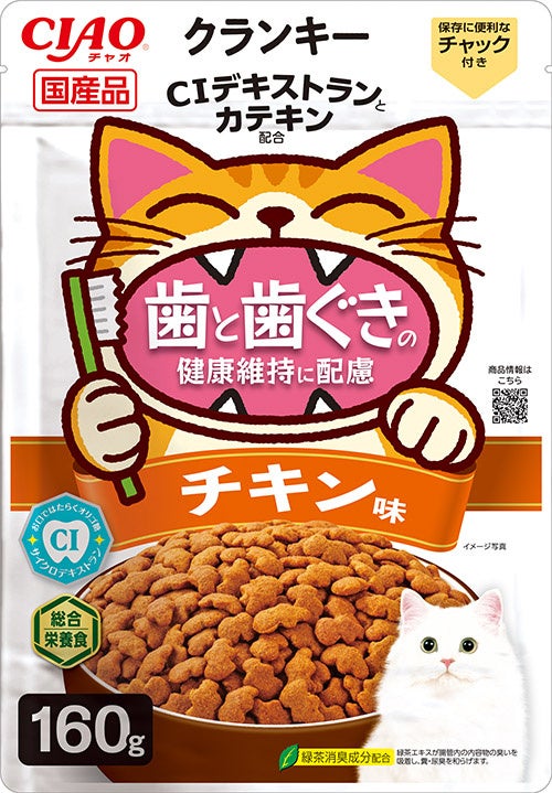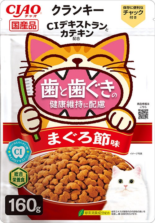 いなばペットフード株式会社(いなば食品グループ 本社:静岡県静岡市清水区由比)は、ご好評いただいている猫ちゃん用総合栄養食「CIAOクランキー 歯と歯ぐきの健康維持に配慮」のパッケージデザインをリニューアルいたしました。お口を大きく開けた猫ちゃんの“おいしい笑顔”が、楽しく続けられるデンタルケア習慣を応援します。