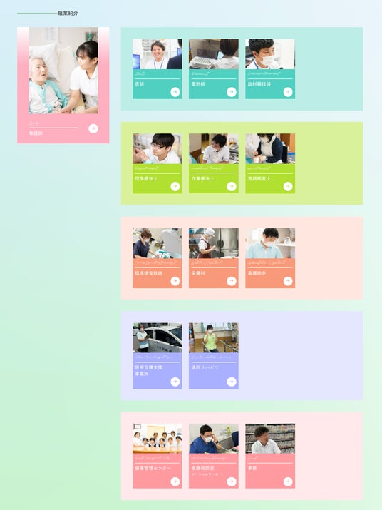 それぞれの職種の特徴をわかりやすく(topページのデザイン)
