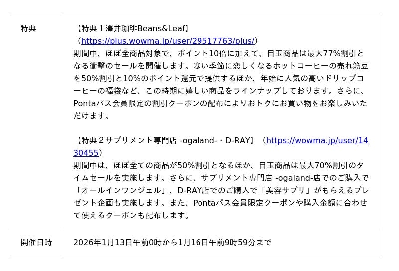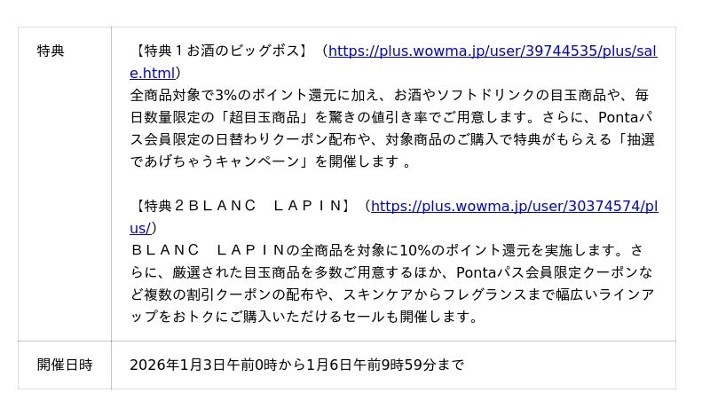 そのほか、詳細はこちら(https://wowma.jp/feature/okaimonorally)