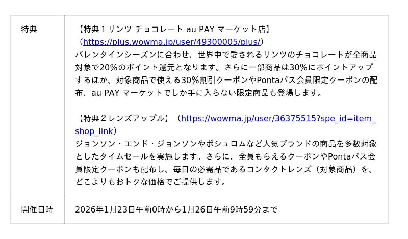 auコマース&ライフが運営する総合ショッピングサイト「au PAY マーケット」は、1月の三太郎の日・お買い物ラリーにおいて、人気店舗コラボレーションによる最大70%割引セール、ポイント還元など、新年の暮らしを豊かにする特典提供を行います。