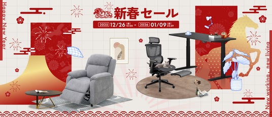 Flexispot Japan株式会社(本社:埼玉県入間郡、代表取締役:斉冰白、以下「FlexiSpot」)は、2025年12月26日(金)より、年末年始イベント「2025 冬のカーニバル」の一環として、「新春セール」を開催いたします。期間中は、昇降デスク、オフィスチェア、リクライニングソファをはじめとする人気製品を、特別価格にてご提供いたします。新年のスタートに向けて、快適で機能的なワーク・リビング環境をお得に整えられる機会となっております。