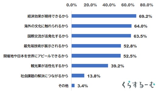 「開催すべき」と答えた人に理由を尋ねたところ、最も多かったのは「経済効果が期待できるから」(69.2%) でした。