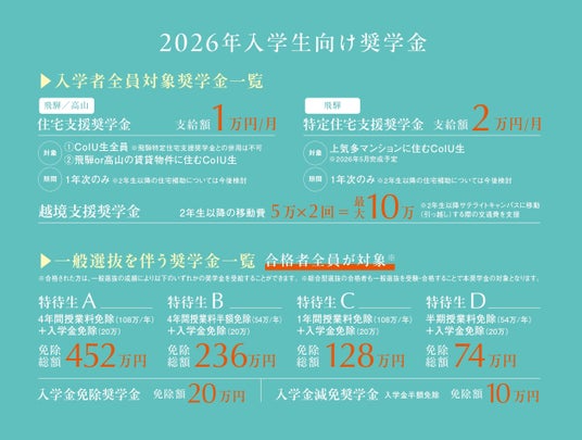 このたび、大学運営者である学校法人CoIU(岐阜県飛騨市、理事長:井上博成)は、2026年入学生を対象とした奨学金制度を新たに公開いたします。