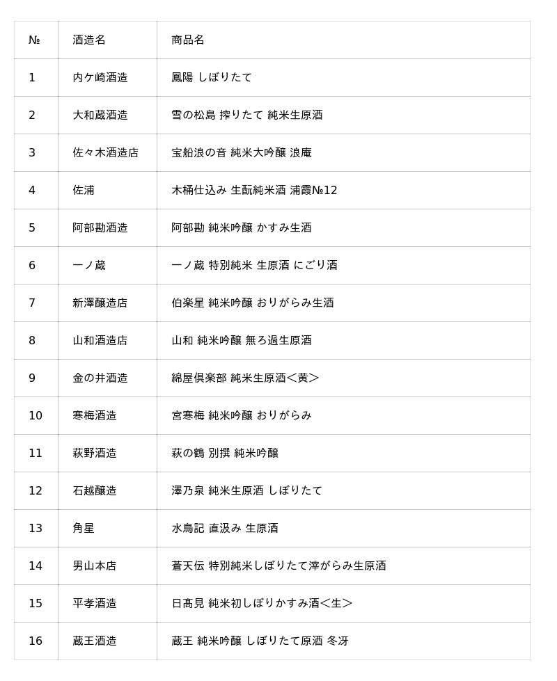 ・1/10(土)…蔵王酒造(商品名:蔵王 純米酒 生酛)