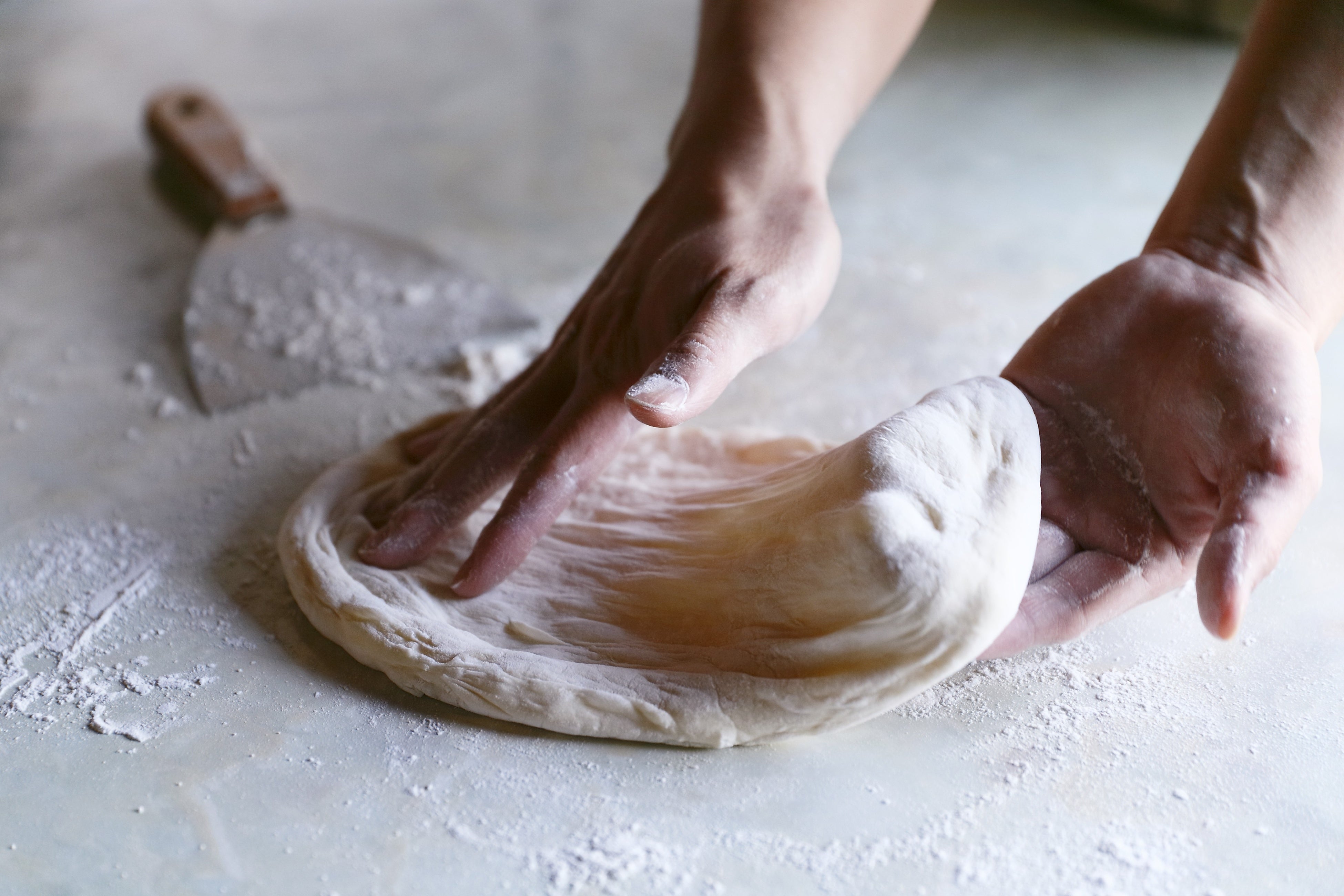 モリナポのピザといえば、独自配合の生地が美味しさの秘訣。高温550度の石窯で一気に焼き上げた生地は、表面はカリッと香ばしく、中は驚くほどモチモチに。熟練の職人が毎日一枚一枚、丁寧に手で伸ばし、手焼きすることで生地内に気泡が生まれ、モリナポの最大の特徴であるもっちりとした食感を実現しています。手作りならではのこだわりが、具材の風味を最大限に引き立てます。