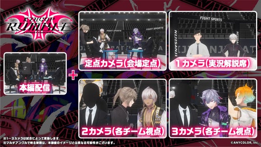 本編カメラ/定点カメラ(会場定点)/1カメラ(実況解説席)/2カメラ(各チーム視点)/3カメラ(各チーム視点)