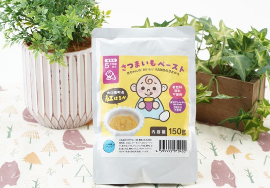 この度、宮城県大河原町(以下「大河原町」)のさつまいも生産者「かず農園」が作る“紅はるか”を使用した「離乳食」を開発しました。本品は未来を担う町内外の子供たちに生産者がわかる安心・安全な商品を食べてほしいとの想いから生まれました。生産者の想いを込めた食材が赤ちゃんの成長に寄与できるようにつないでいきます。