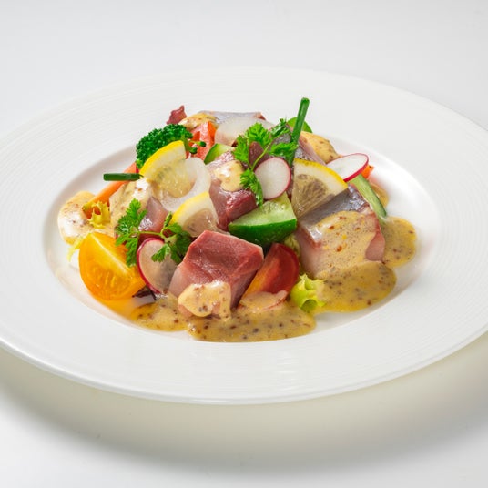 柚子味噌マスタードの香りとコクが広がる「寒ブリのサラダ 柚子味噌マスタード」をはじめ、ランチ限定で味わえる、「北海道産 夢の大地豚 低温ロースト 青森黒ニンニクのソース」、芳醇な香りとともにとろけるような食感を楽しめるディナー限定の「仙台名物 牛タンの赤ワイン煮込み」など、北の食材ならではの旨みを引き出した、この季節ならではのメニューが勢揃い。