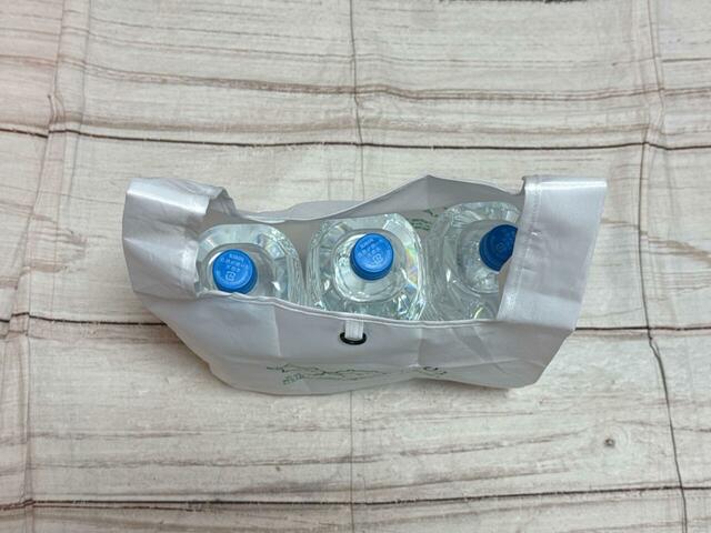 実際に自宅にあった2Lペットボトルを入れてみたところ、3本収納できました!ビッグサイズではありませんが、サイドにマチがついているおかげで見た目以上の大容量。日々のお買い物の強い味方になってくれそうです。