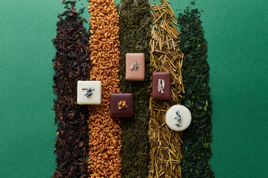 「日本のおいしさ探求」がテーマのコレクションBOX。日本各地で生産されるお茶の中から、静岡県・カネロク松本園の烏龍茶、三重・伊勢宇治園の伊勢茶、京都・柳櫻園の玄米茶、石川・丸八製茶場の加賀棒茶、愛知の西尾抹茶を厳選し、カカオ豆から丁寧に作り上げた自家製チョコレートを、それぞれのお茶に合わせてブレンド。素材の個性を大切にし、お茶とカカオが調和する繊細な風味のショコラに仕上げました。口どけとともに豊かな香りと奥行きのあるふくよかな甘みが広がる、日本のお茶の魅力を堪能する詰め合わせです。カカオ豆の搾油まで手掛け、ホワイトチョコレートさえも自家製で作るショコラティエ パレドオールだからこそ引き出せる味わい。大切な方への贈り物や自分へのご褒美ショコラとしておすすめの、ゆったりと心和むショコラをお楽しみください。