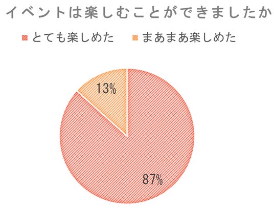 イベント開催後のアンケートでは、参加者の100%が『楽しめた』と回答。うち87%が『とても楽しめた』と回答し、非常に満足度の高いものとなりました。
